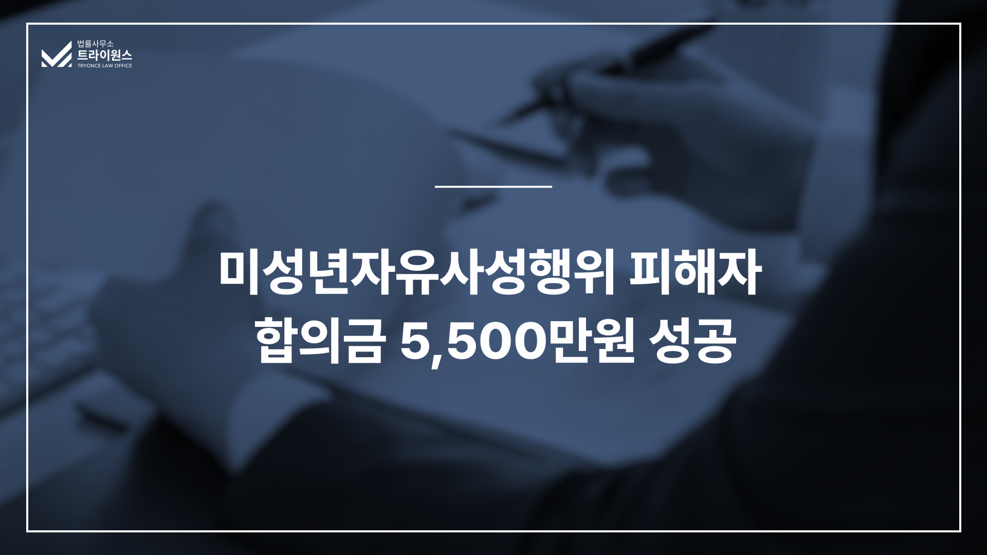 본 사안은 미성년자 유사성행위 피해 사건으로, 고소 전 변호사의 조력을 통해 5,500만 원의 합의금을 이끌어낸 사례입니다.