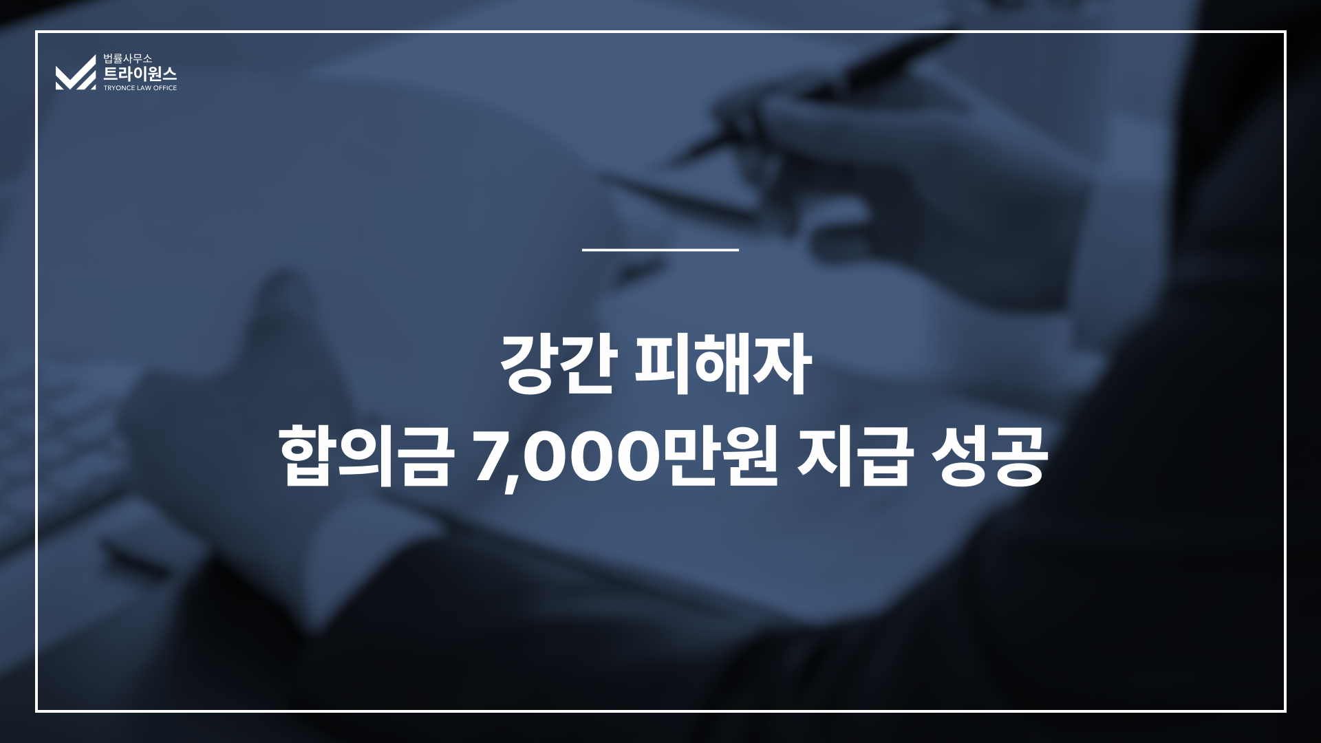 결국 가해자 K씨는 성폭행 및 상해 발생의 책임을 인정하고, 의뢰인 E씨에게 총 7,000만 원의 합의금을 지급하는 조건으로 합의에 이르렀습니다.