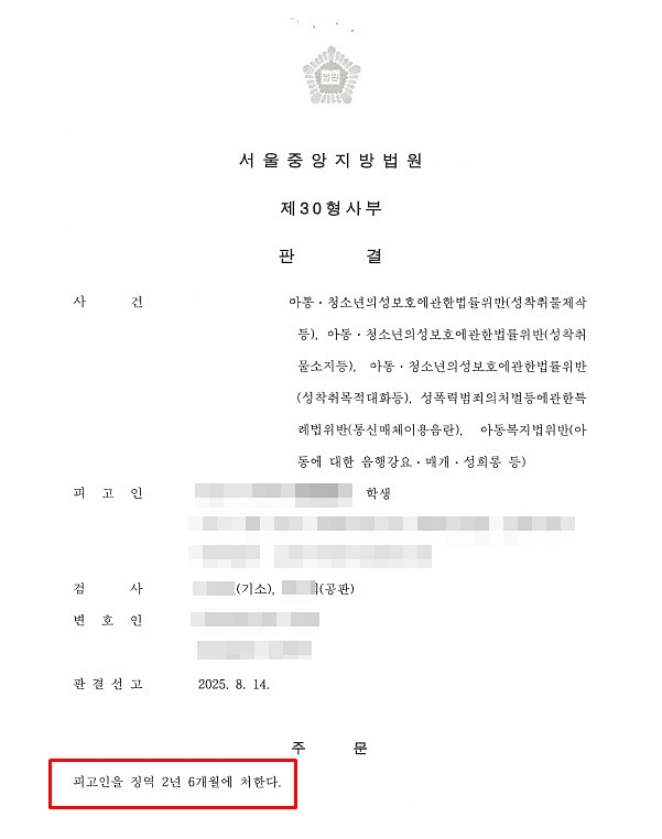 아동성착취 징역 2년 6개월 실형 판결 사례
