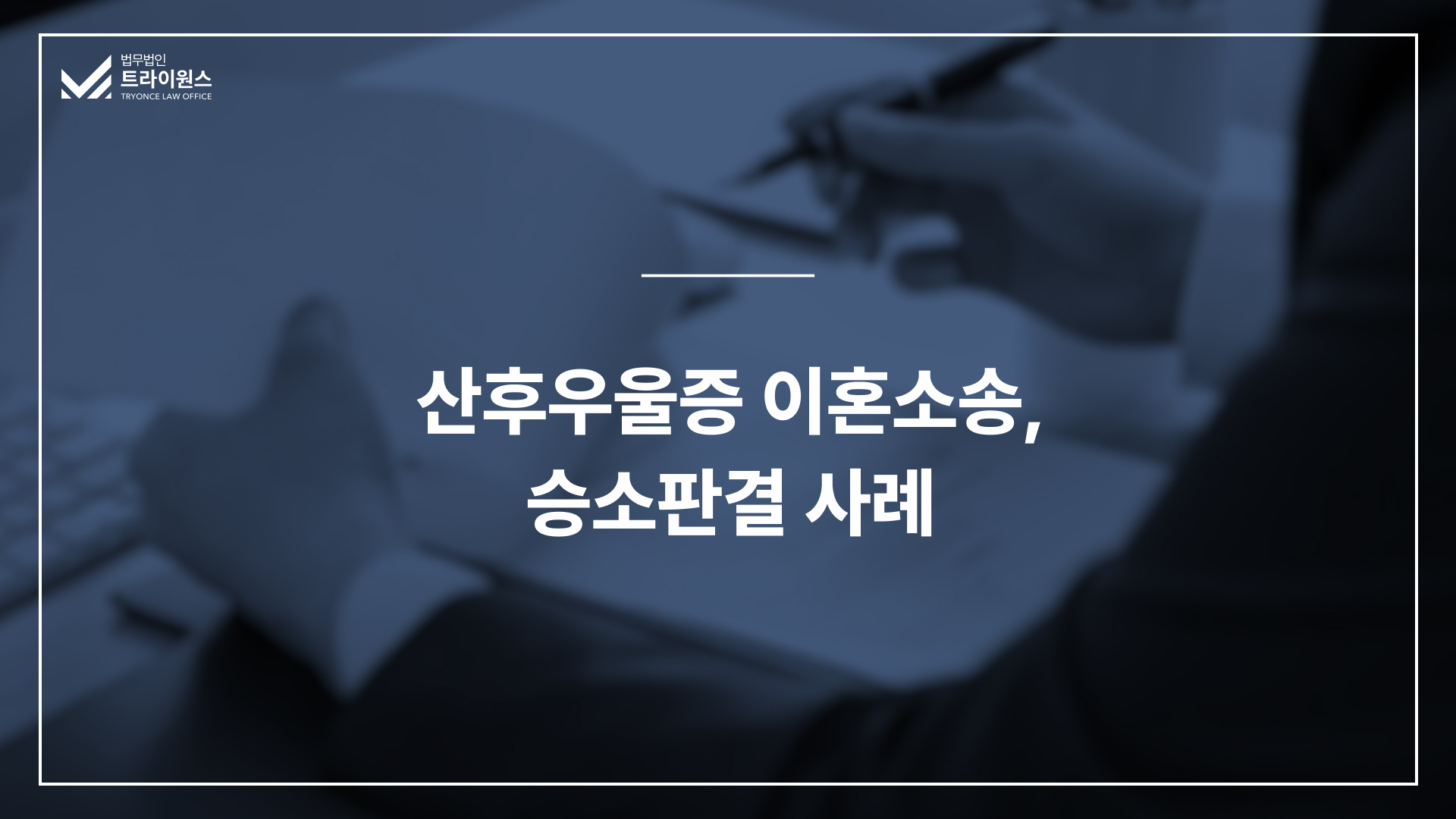 본 사안은 트라이원스의 조력으로, 출산 후 심각한 산후우울증을 겪고 이혼을 결심한 의뢰인이 양육권과 위자료, 재산분할 모두에서 승소한 사례입니다.