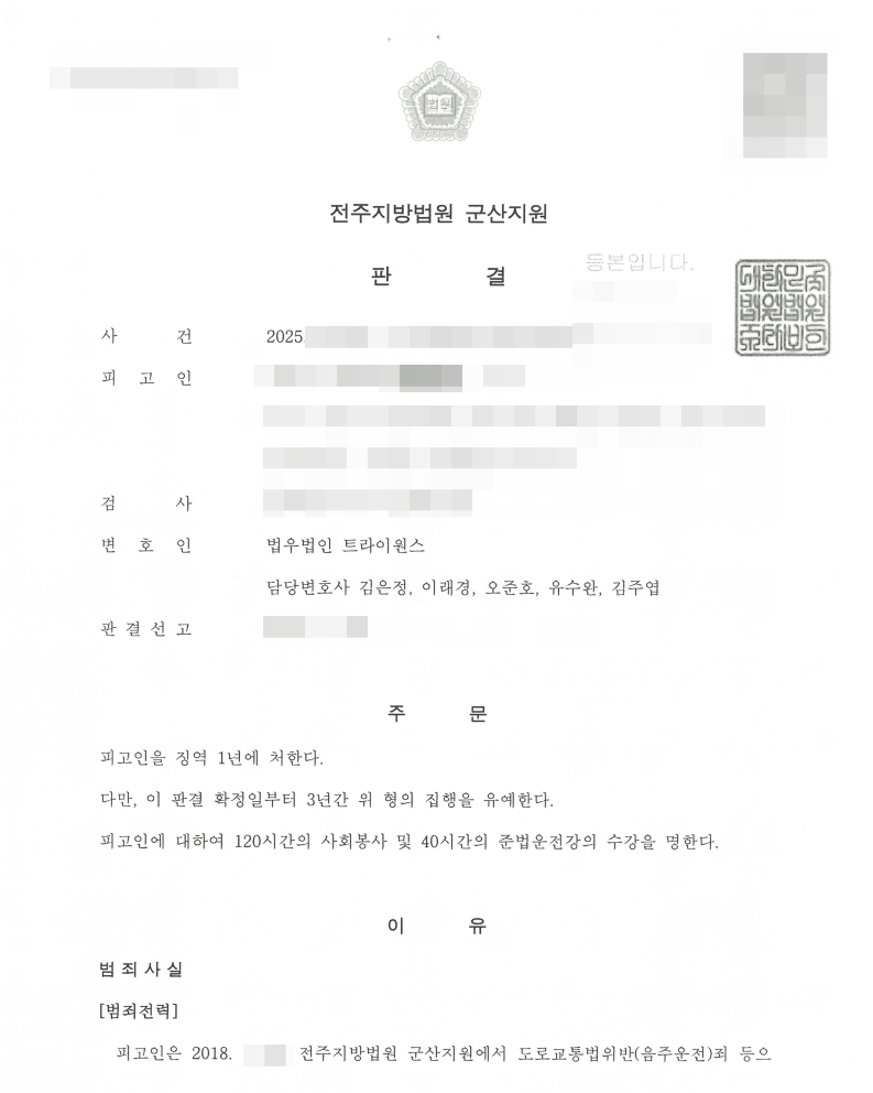 음주운전 6회 실형위기에 놓인 의뢰인을 조력한 사례