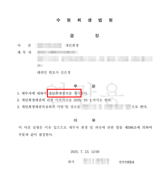 회사에는 어떤 통보나 연락도 이루어지지 않았으며 의뢰인은 정상적인 직장생활을 이어가며 변제금을 납부했습니다. 채권자 독촉과 압류 위험에서 벗어나며 심리적 부담도 크게 줄었습니다.