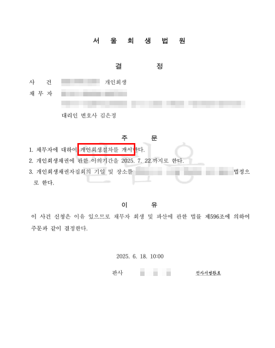 의뢰인은 월급 대부분이 이자 상환으로 빠져나가면서 생활이 점점 어려워졌습니다. 연체가 쌓이자 채권사 독촉이 이어졌고 신용점수 하락으로 추가 대출도 불가능해졌습니다. 결국 급여가 안정적으로 유지되고 있음에도 불구하고 실질적으로 상환 능력을 상실한 상태에 놓였습니다.