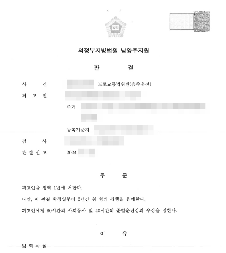 비록 사고나 인명 피해는 발생하지 않았지만, 수치 자체만으로도 중형이 충분히 검토될 수 있는 상황이었습니다.